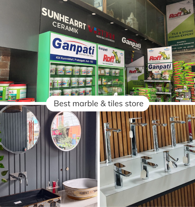 We offer a complete range of premium tiles, marble, granite, adhesives, chemicals, and modern sanitaryware to enhance every space. At Ganapati Marble and Granite in Narendrapur, we bring you durable products with elegant designs that combine beauty, strength, and functionality for your home and projects.